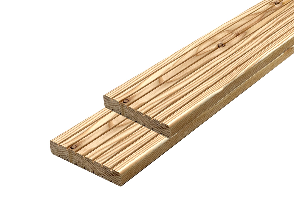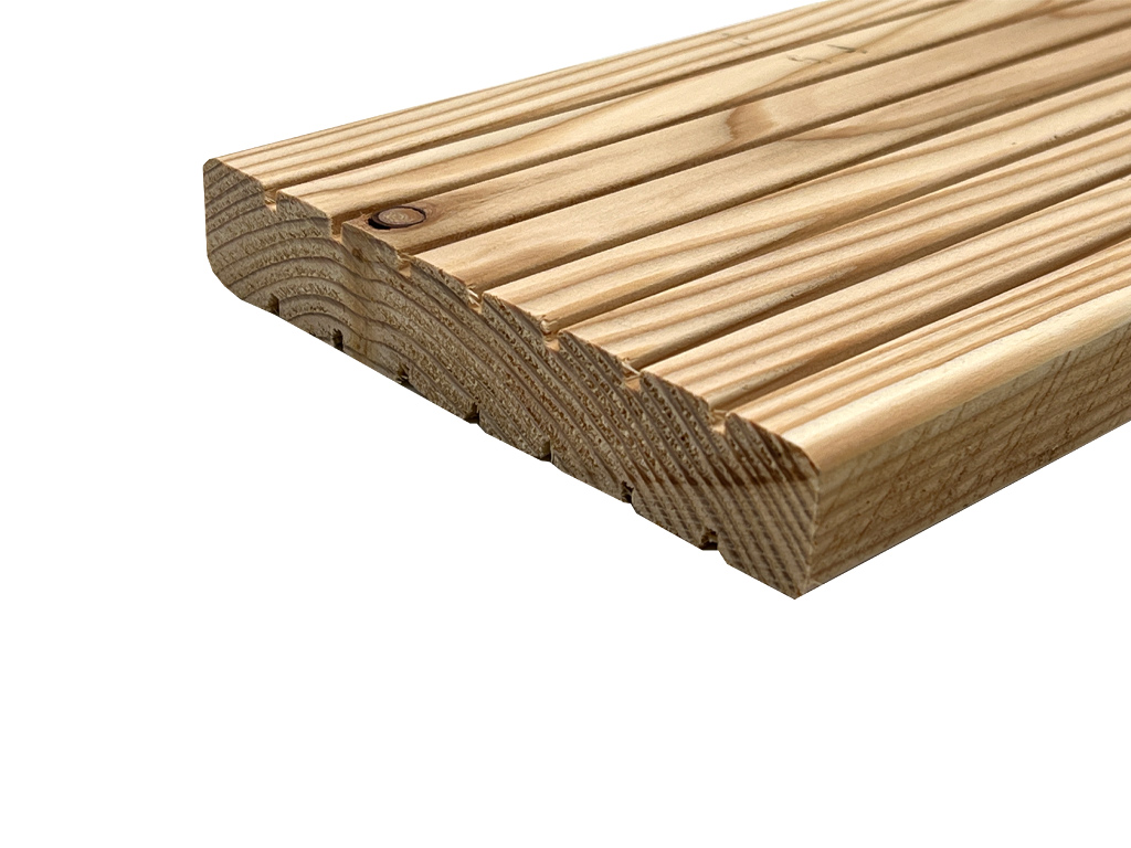 Diese 25 mm starken Terrassendielen werden aus Lärche hergestellt. Das Holz der Lärche ist mit einer mäßigen Dauerhaftigkeitsklasse 3 eines der härtesten unter den heimischen Nadelhölzern. Das helle Holz in gelbem bis orangebraunem Farbton zeichnet sich durch eine ausgeprägte Maserung, deutliche Jahresringe und geradfaserige Struktur aus. Der hohe Harzanteil schützt eigenständig vor Pilz- und Insektenbefall. Lärchenholz lässt sich manuell und maschinell leicht bearbeiten. Zum Nageln und Schrauben wird das Vorbohren empfohlen.