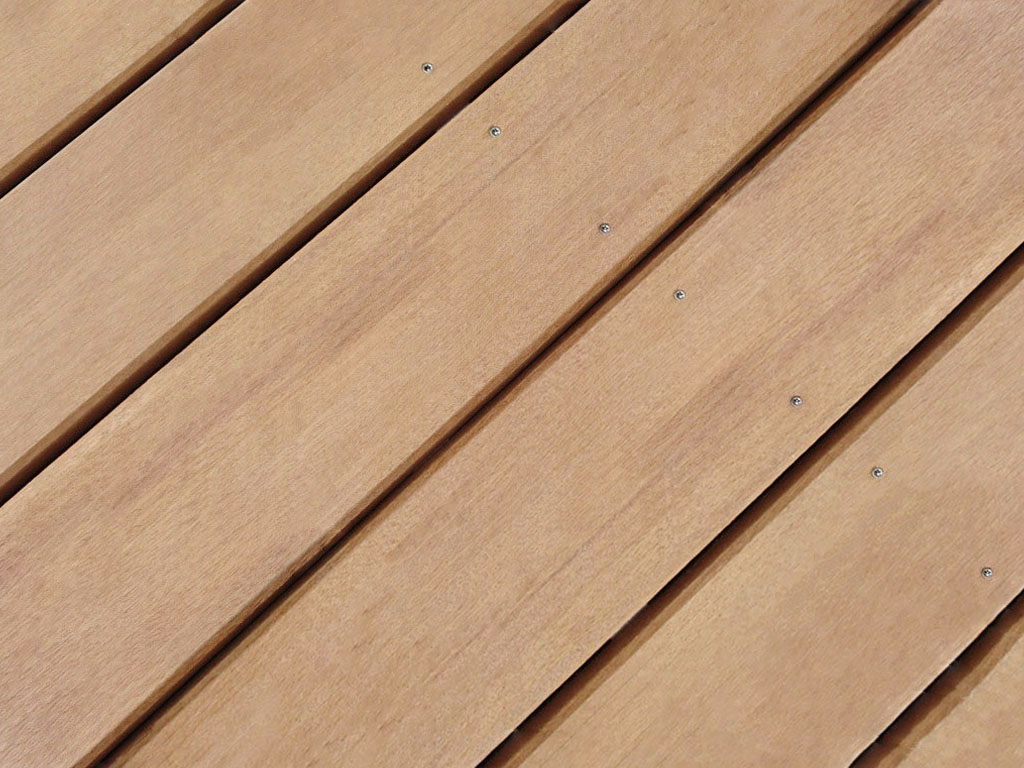Alle Dielen werden mit einem Wachs am Kopfende ausgeliefert (Stirnkantenwachs oder Parrafin). Dies reduziert das Risiko einer Riss- und Splitterbildung von Tropenholz-Terrassendielen an Stirnkanten und Schnittflächen. Das Wachs ist stark wasserabweisend, beugt dem Ausbluten von Holzinhaltsstoffen vor und schützt vor eindringender Feuchtigkeit.