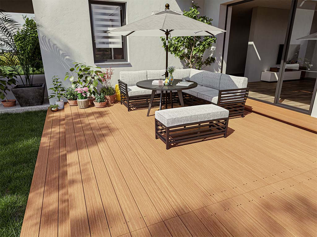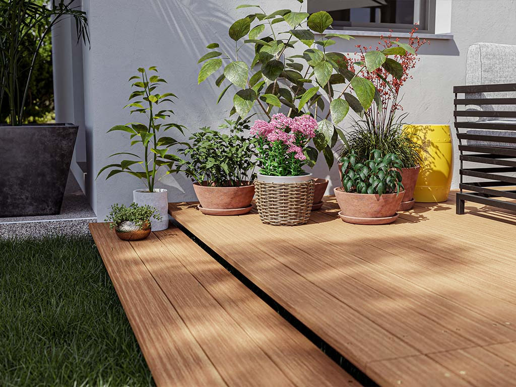 Bitte beachte, dass Farben und Maße unserer Holzterrassendielen produktionsbedingt sowie durch natürliche Materialeigenschaften leicht variieren können. Geringfügige Abweichungen stellen keinen Qualitätsmangel dar.