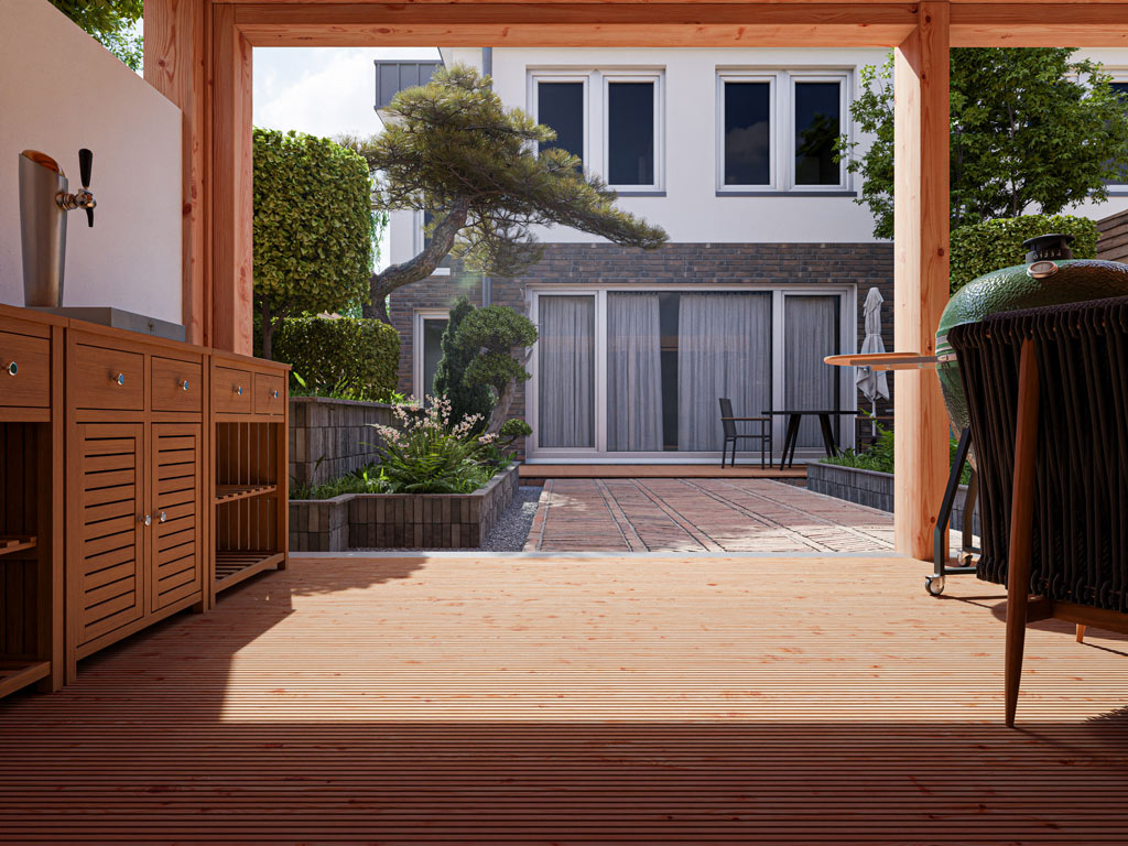 Bitte beachte, dass Farben und Maße unserer Holzterrassendielen produktionsbedingt sowie durch natürliche Materialeigenschaften leicht variieren können. Geringfügige Abweichungen stellen keinen Qualitätsmangel dar.
