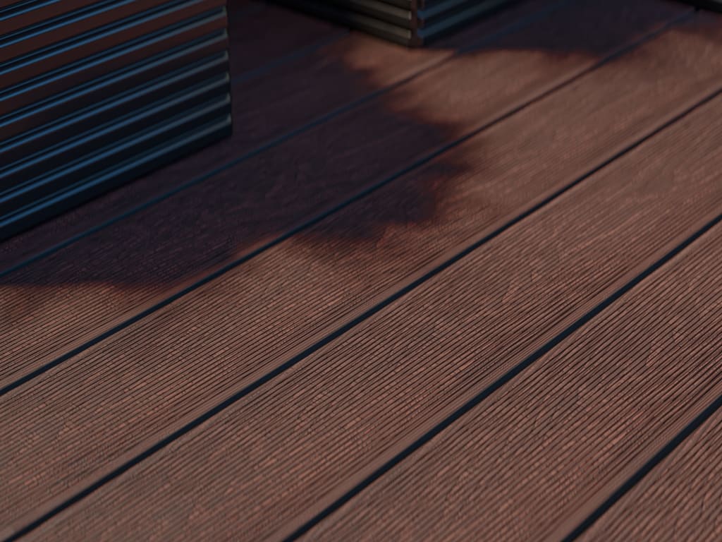 Bei mono-extrudierten WPC-Terrassendielen werden die Dielen in einem speziellen Extrusionsverfahren gefertigt und durchgängig in der Masse gefärbt. Dadurch entsteht eine homogene Struktur mit einer natürlichen Optik, die echtem Rohholz täuschend ähnlich sieht. Gleichzeitig bietet dieses Verfahren eine hohe Formstabilität sowie Widerstandsfähigkeit gegenüber Feuchtigkeit und Temperaturschwankungen.