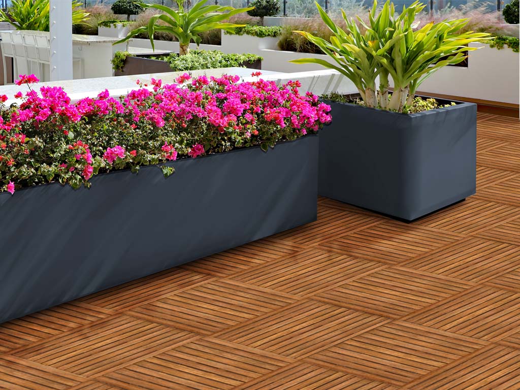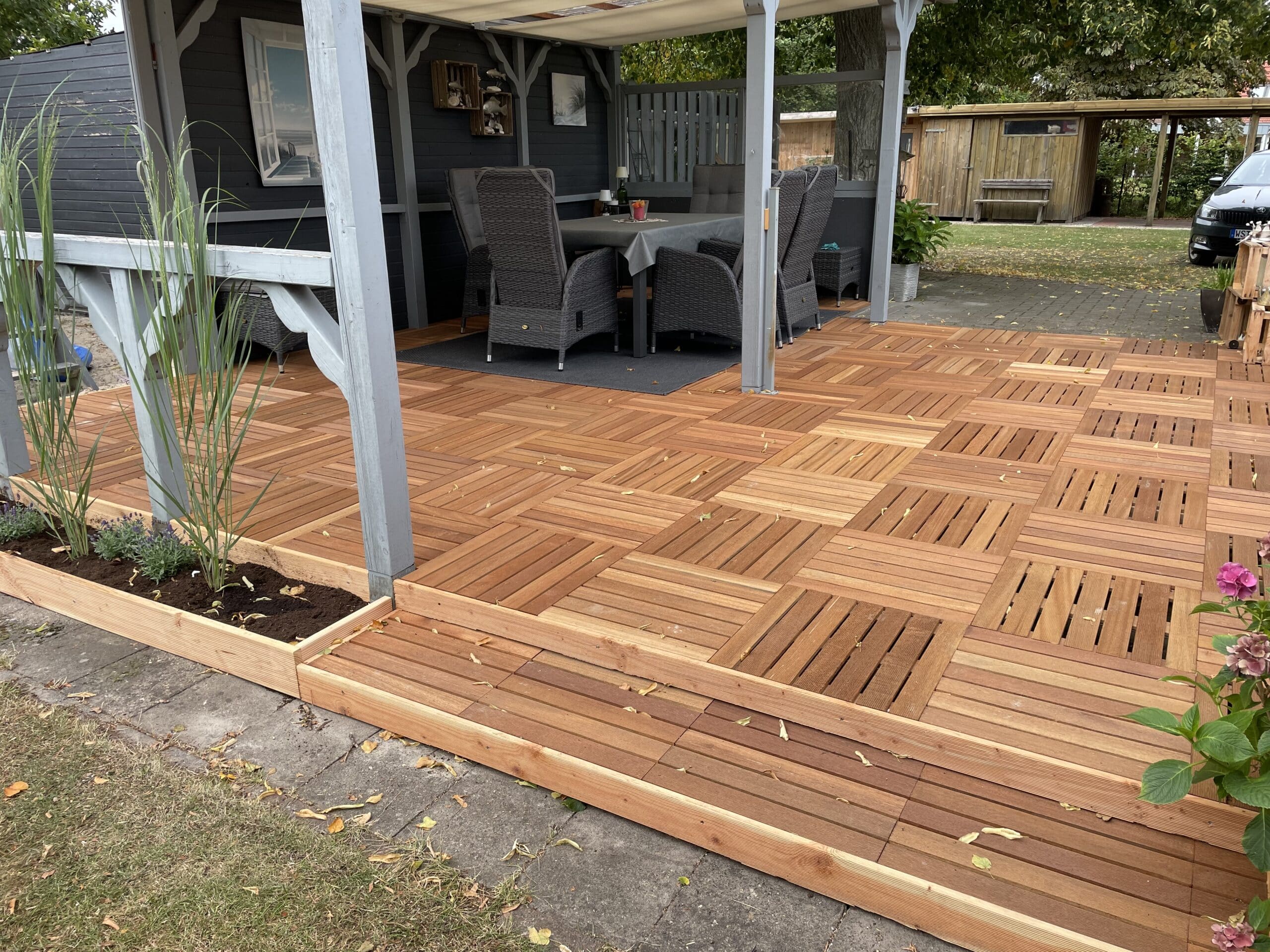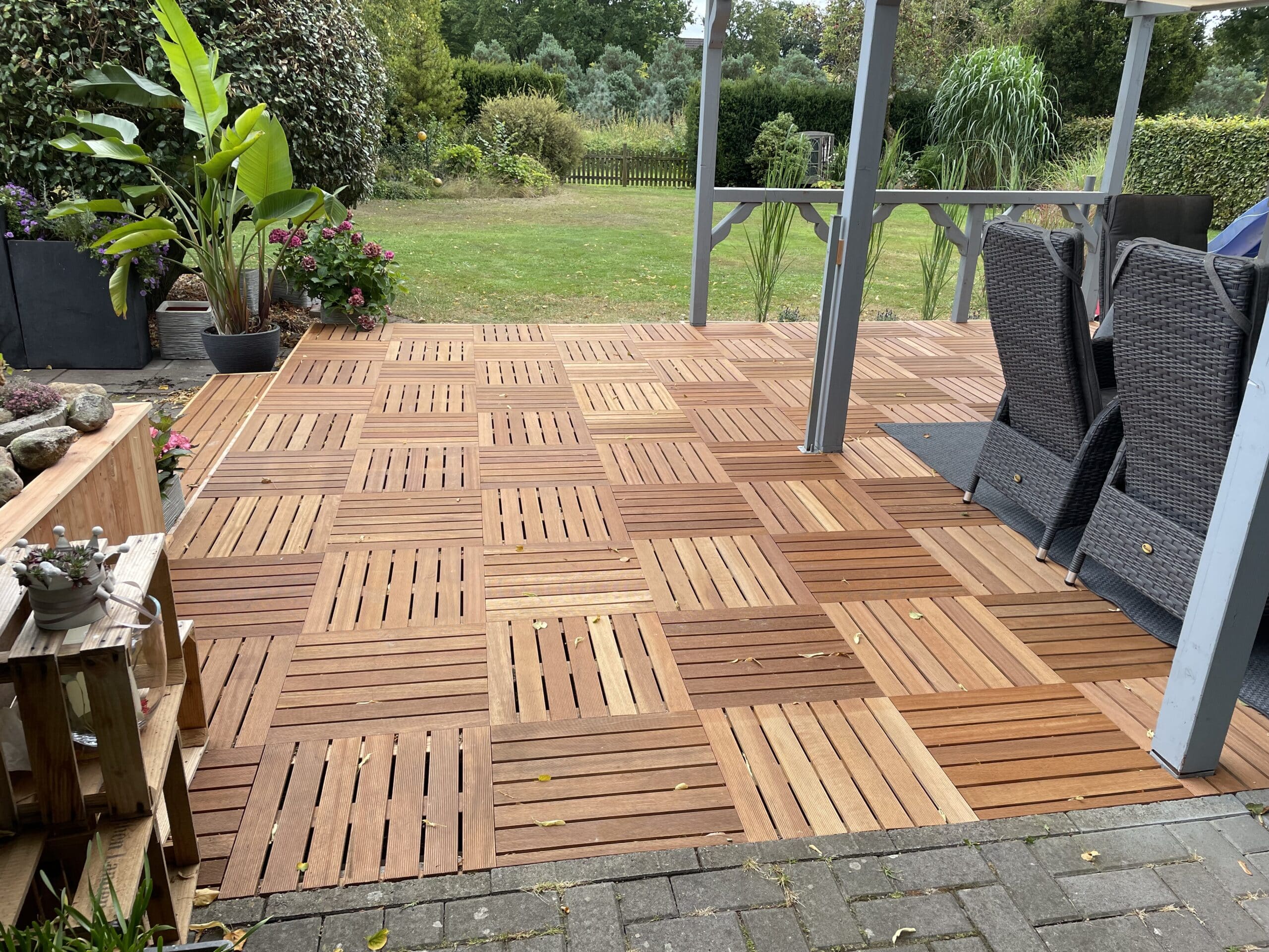 denn Bangkirai ist hart und daher ein sehr gutes Konstruktionsholz. - Es werden 4 Fliesen pro m² benötigt.