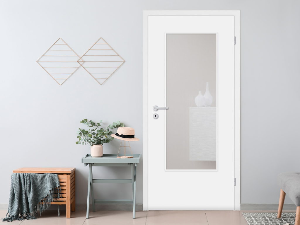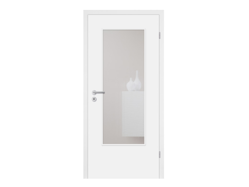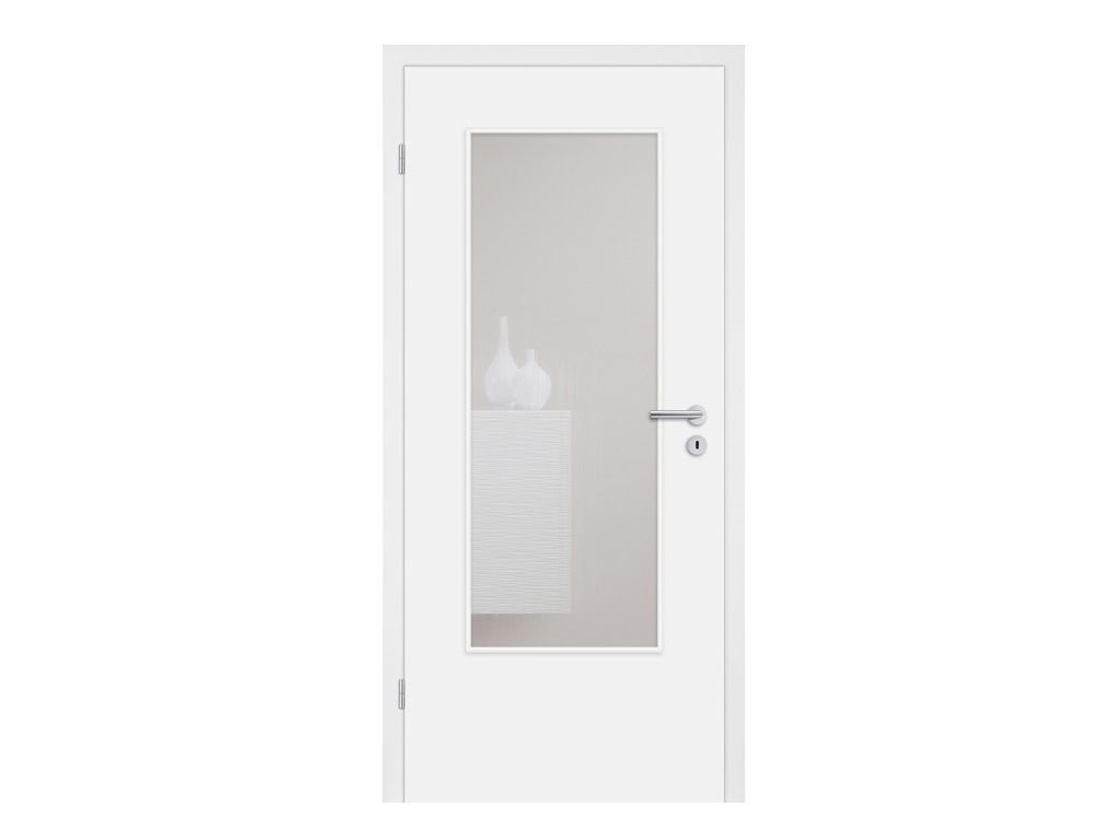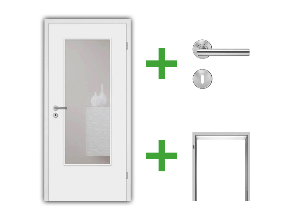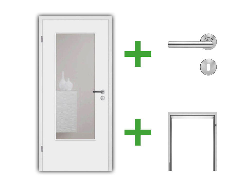 Türenset Alba CPL Weiß RAL 9003 mit Lichtausschnitt (ohne Glas) - Türblatt, Zarge, Drückergarnitur