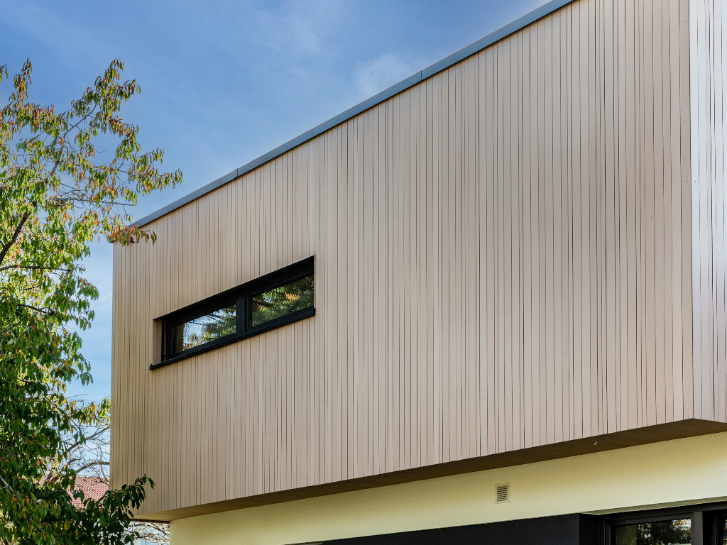 Fassaden aus Resysta begeistern nicht nur mit ihrem natürlichen Look. Sie erweisen sich auch als ideale Verkleidung, weil sie selbst nach Jahrzehnten noch über einen dauerhaften Witterungsschutz verfügen. Resysta, der innovative Naturfaser-Werkstoff, besteht zu ca. 60 % aus Reishülsen und ist wasserfest, UV-beständig sowie extrem strapazierfähig – perfekt für langlebige Fassadenlösungen im Außenbereich. Die Profile lassen sich thermoplastisch verformen und ihre Oberfläche kann mit verschiedensten Lacken und Farben veredelt werden – für ein absolut individuelles Ergebnis.