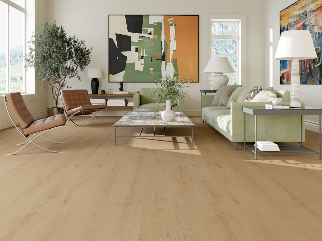 Das Dekor in edler Eichenholzoptik passt perfekt zu nahezu allen aktuellen Einrichtungsstilen. Landhausdielen wirken mit ihrer 1-Stab-Optik elegant, rustikal und voller Charakter. Dieser fugenlose Bodenbelag erzielt aufgrund seiner nahtlos aneinander gereihten Dielen ein ebenmäßiges und harmonisches Gesamtbild. Die authentisch wirkende Oberfläche ist durch eine feine Porenstruktur gekennzeichnet, die man so auch bei edlen Echtholz-Böden findet.