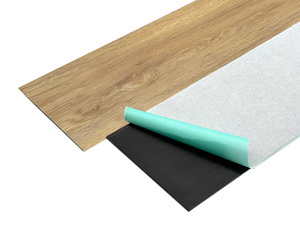 Der Vinylbodenaufbau ist meist fünfschichtig: Die strapazierfähige PU-vergütete Nutzschicht, die mit dem Dekor verpresst ist, darunter der Vinylträger, dann die Trägerplatte sowie der untere Gegenzug, der dem Verziehen der Diele entgegenwirkt.