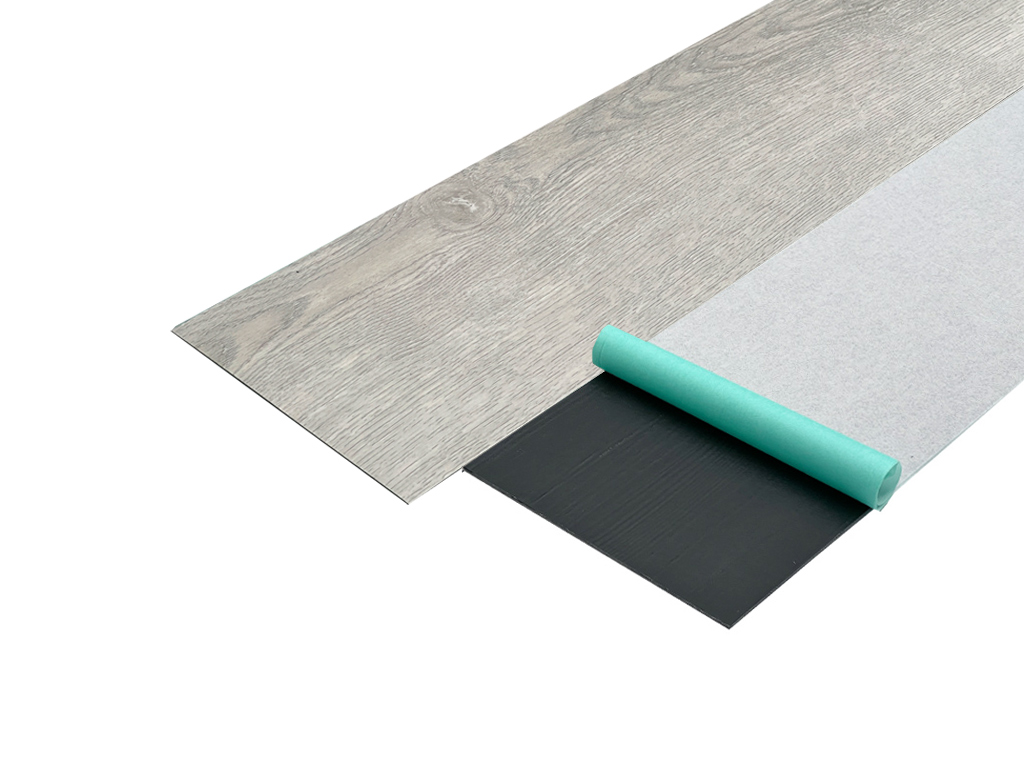 Vinylböden folgen in der Regel einem fünfschichtigen Aufbau: Oben die PU-vergütete Nutzschicht, die mit der Dekorfolie zu einer widerstandsfähigen Oberfläche verpresst ist, darunter der Vinylträger, der auf der Trägerplatte liegt. Die unterste Lage bildet der Gegenzug, der für Stabilität sorgt.