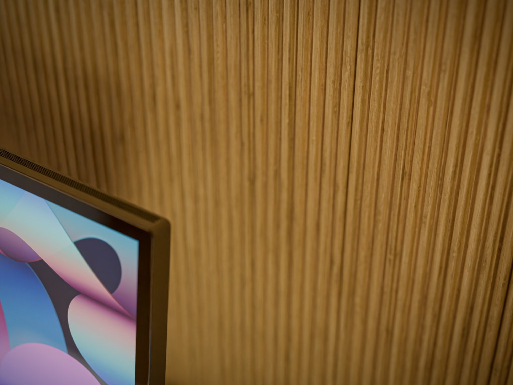 Die Wandpaneele sind aus Echtholz gefertigt. Hierbei handelt es sich um Bambus. Dieser überzeugt durch seine gleichmäßige, feine Struktur und die helle, natürliche Farbgebung. Neben seiner optischen Wirkung punktet er mit sehr guten technischen Eigenschaften: Er ist besonders stabil, formbeständig und widerstandsfähig gegenüber Abnutzung. Auch bei Schwankungen von Luftfeuchtigkeit zeigt Bambus nur ein geringes Schwind- und Quellverhalten, verzieht sich kaum und neigt nicht zu Rissbildungen. Bambus wächst bis zu einem Meter pro Tag und ist somit eine sehr nachhaltige und umweltfreundliche Wahl.