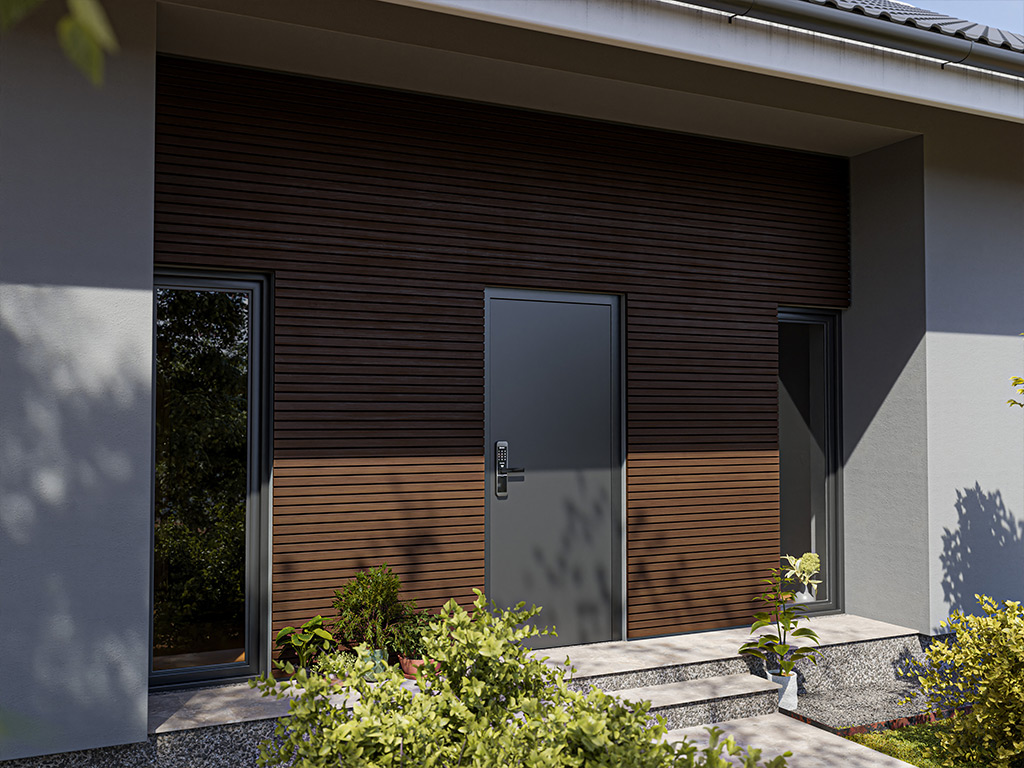 Optisch wirkt das Profil wie feine einzelne Rhombusprofile. Jedoch handelt es sich um eine geschlossene Verkleidung mit Nut- + Federprofilen. Ein einzigartiges Aussehen, das angenehm zu berührendes Material und intensive, zufällig kombinierte holzähnliche Farben verbindet.