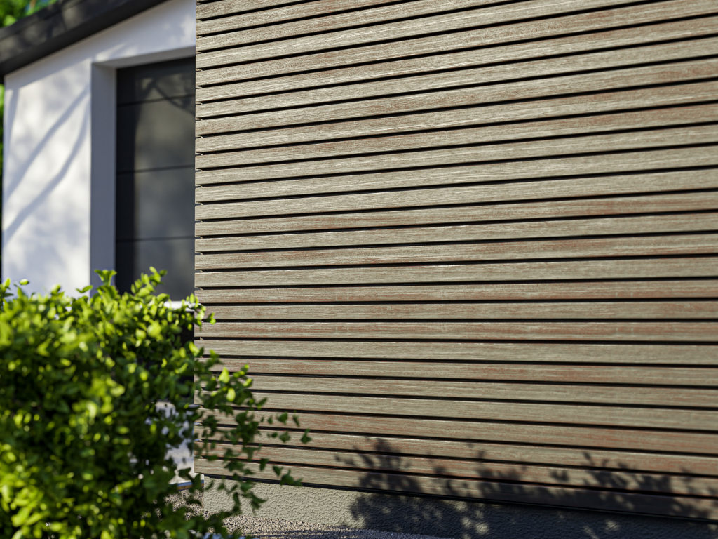 Optisch wirkt das Profil wie feine einzelne Rhombusprofile. Jedoch handelt es sich um eine geschlossene Verkleidung mit Nut- + Federprofilen. Ein einzigartiges Aussehen, das angenehm zu berührendes Material und intensive, zufällig kombinierte holzähnliche Farben verbindet.