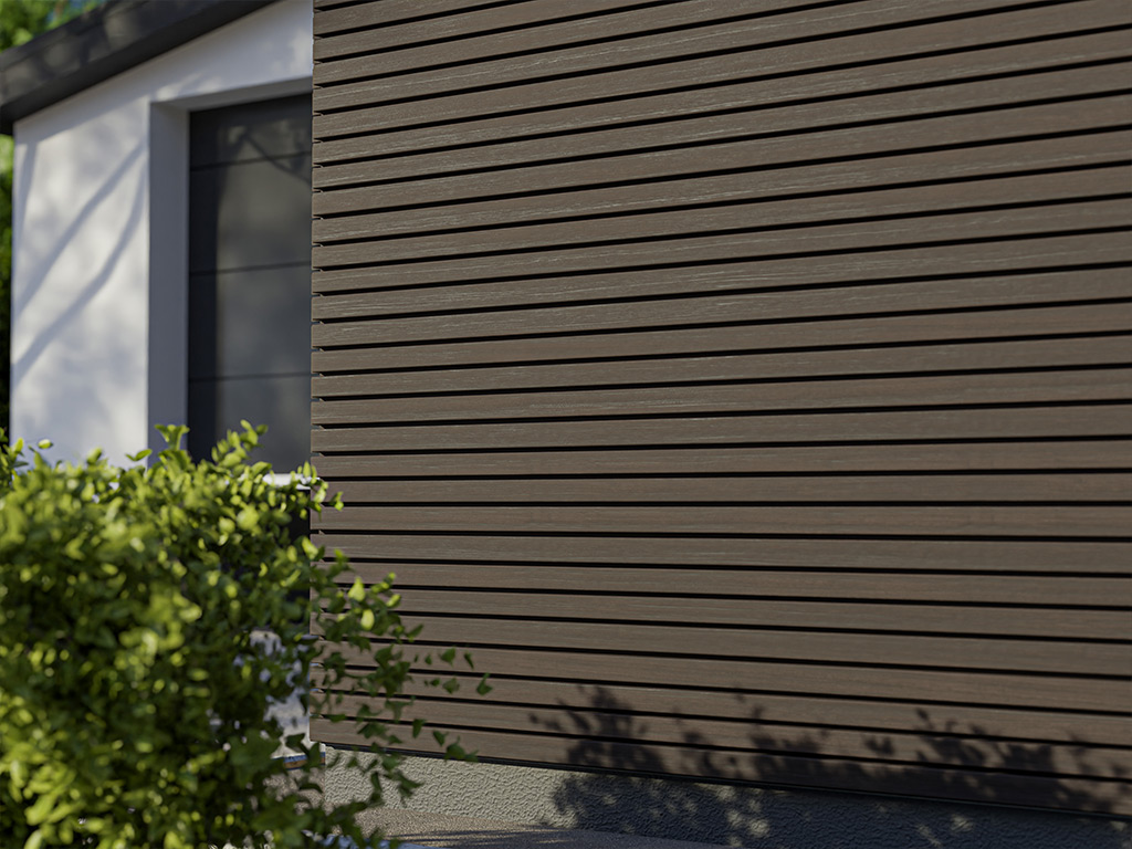 Eine Verschraubung der WPC-Profile in Fassadenoptik mit nur einer Edelstahlschraube pro Befestigungspunkt gewährleistet eine schnelle und zuverlässige Montage. - Pflegeleicht