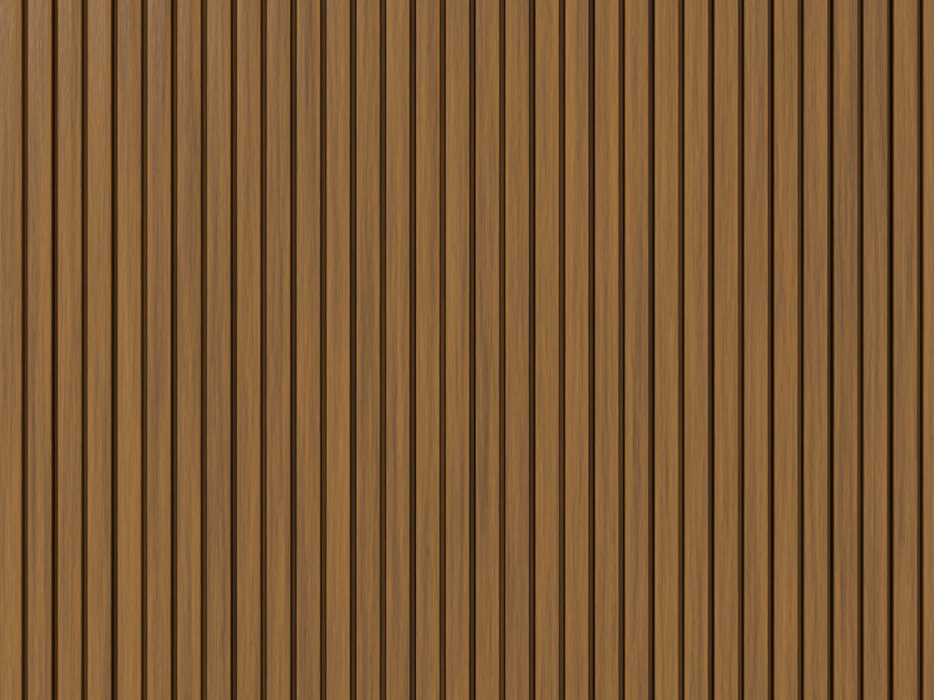 Optisch wirkt die Fassadenverkleidung wie feine, einzelne Rhombusprofile. Jedoch handelt es sich um eine geschlossen Verkleidung mit Nut + Federprofilen. Ein einzigartiges Aussehen, das angenehm zu berührendes Material und intensive, zufällig kombinierte holzähnliche Farben verbindet. Unauffällige Befestigung mit Schraubköpfen in Profilfarbe.