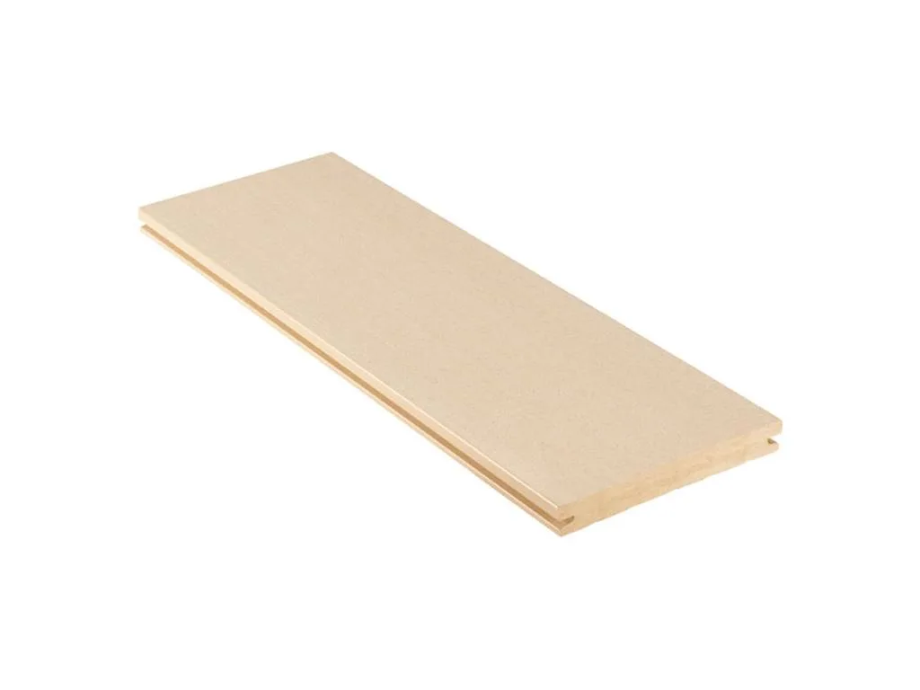 Diese 21 mm starke Terrassendielen werden aus WPC hergestellt.