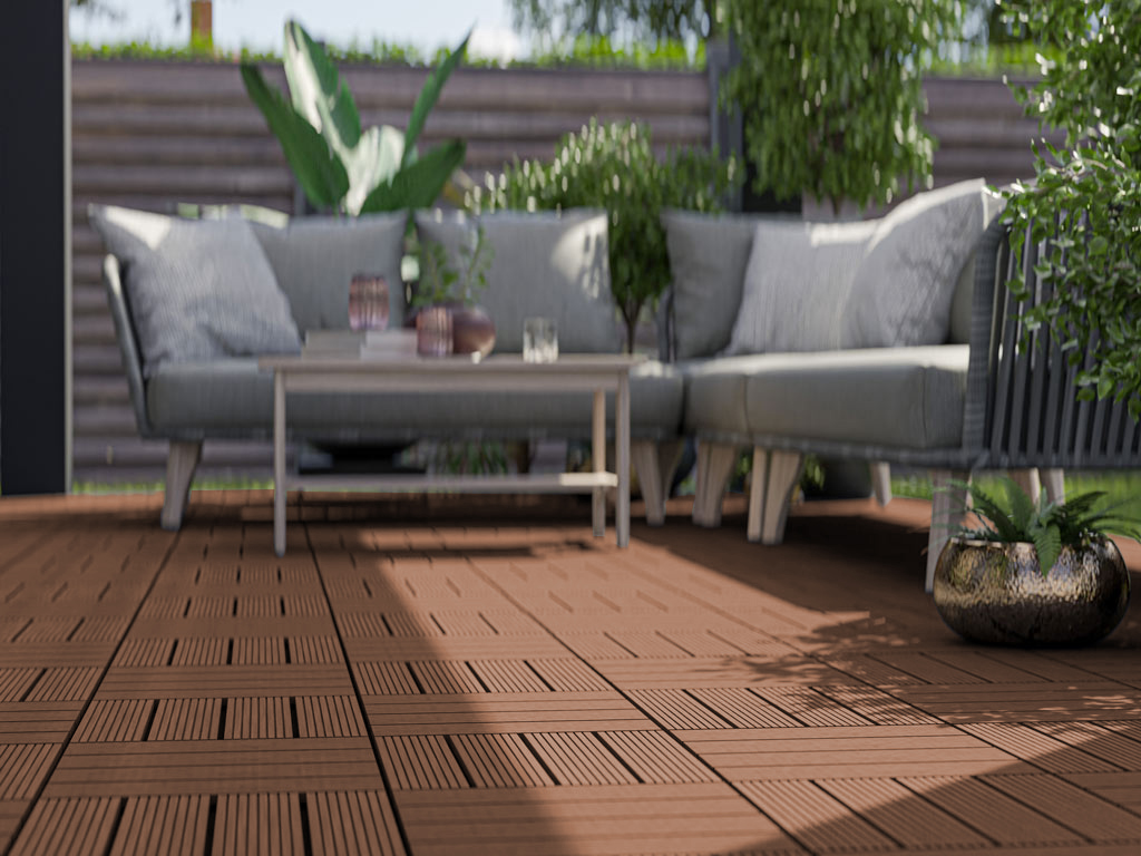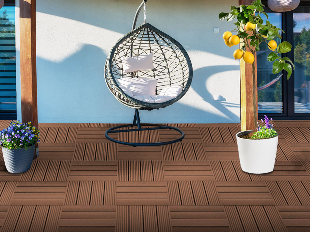 Ideal auch für den Barfußbereich einsetzbar. Die Kombination von Holz und Kunststoff verleiht der Terrasse eine hohe Qualität, so dass du lange Freude an deiner Terrasse hast. Das geriffelte Profil der Terrassenfliese wirkt rutschhemmend und sorgt für ein angenehmes Geherlebnis.
