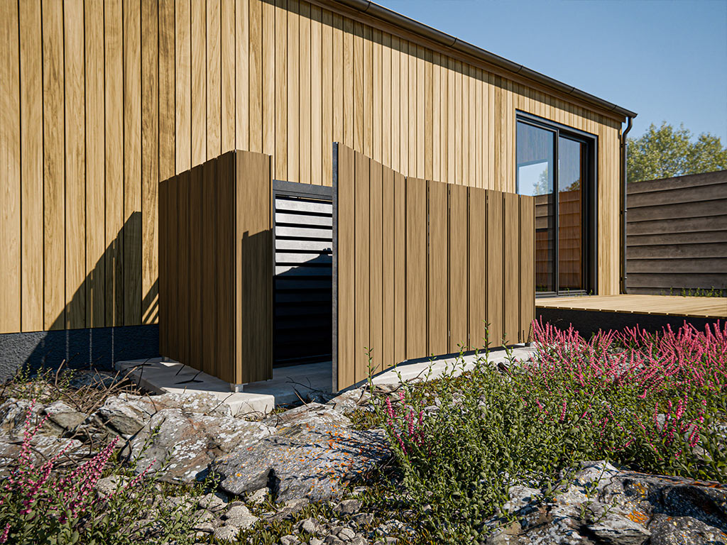 WPC (Wood Plastic Composite) ist eine Verbindung aus Holz und Kunststoff mit vielen Vorteilen. Dieser Verbundwerkstoff ist nicht nur leicht zu pflegen und reinigen, sondern auch witterungsbeständig, form- und farbstabil, splitterfrei und rutschfest – die ideale Fassadenverkleidung. Außerdem zeichnet er sich durch die hohe Dichte aus, die ihn gut vor Insektenbefall schützt.