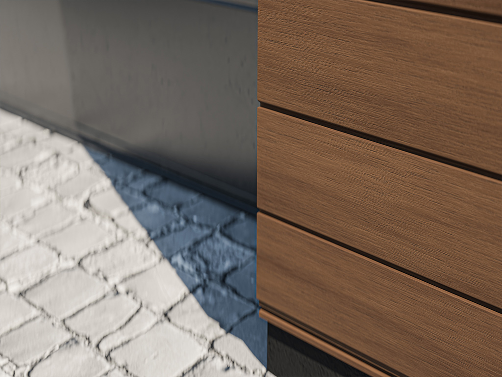 WPC (Wood Plastic Composite) ist eine Verbindung aus Holz und Kunststoff mit vielen Vorteilen. Dieser Verbundwerkstoff ist nicht nur leicht zu pflegen und reinigen, sondern auch witterungsbeständig, form- und farbstabil, splitterfrei und rutschfest – die ideale Fassadenverkleidung. Außerdem zeichnet er sich durch die hohe Dichte aus, die ihn gut vor Insektenbefall schützt.