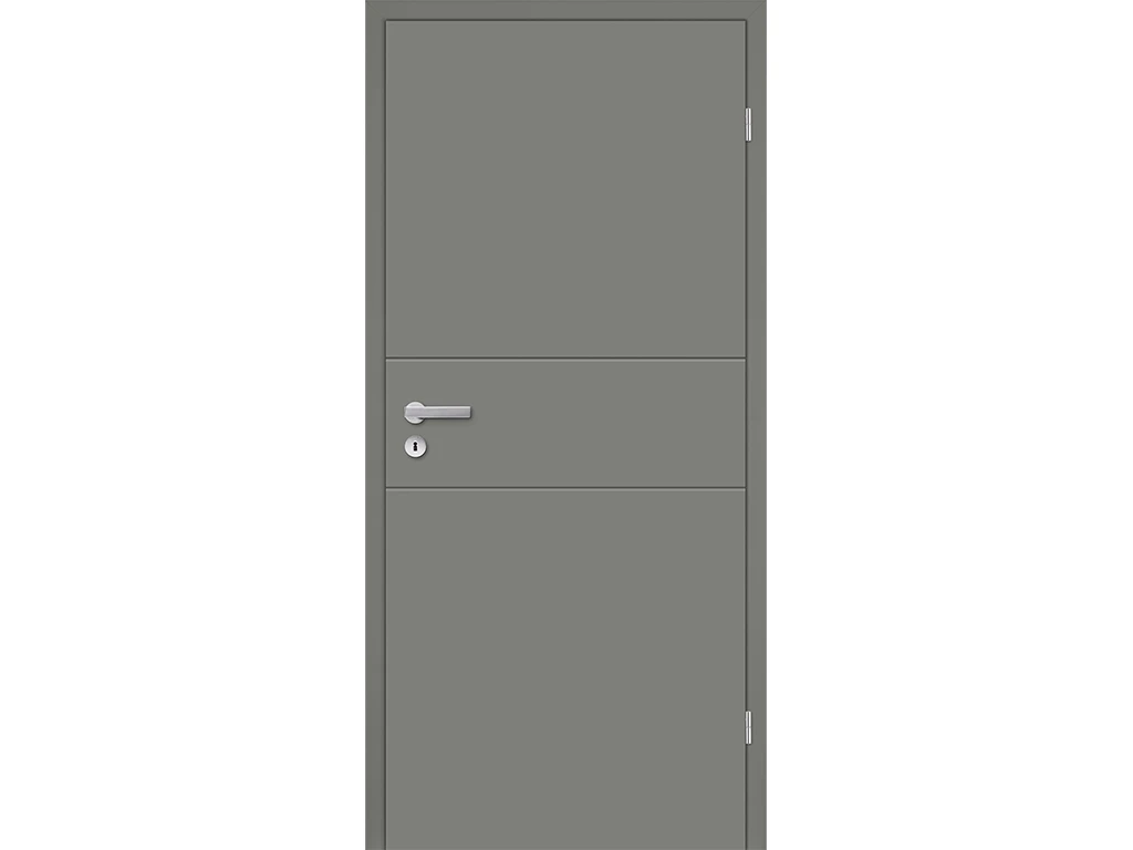 Das Türblatt hat eine Designkante. Diese Kantenform zeichnet sich durch eine leicht abgerundete Eckkante aus, die mit eckigen Oberseiten kombiniert ist. Die Rundkante ist jedoch nicht so stark ausgeprägt und hat eine ca. 2 mm kleine Kantenrundung. Durch die leichte Rundung ist die Kante robuster und unempfindlicher gegen Stöße. Das Türblatt ist gefälzt, das heißt, die Türkante in L-Form liegt auf dem Türrahmen/der Zarge auf. Dadurch wird der Spalt zwischen Zarge und Türblatt ideal abgedichtet. Es können weniger Geräusche, Licht und Luft durchdringen.